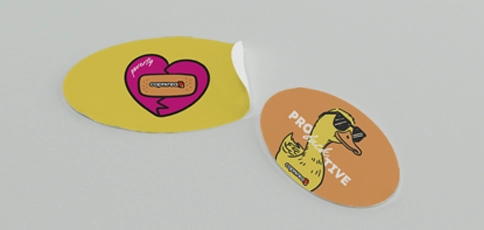 Estas pegatinas están impresas sobre vinilo transparente de gran resistencia, con tintas de alta definición que garantizan colores intensos, incluso sobre fondos claros. La película adhesiva es flexible, duradera y se adhiere fácilmente a superficies lisas, como cristal, plástico, metal o papel satinado.